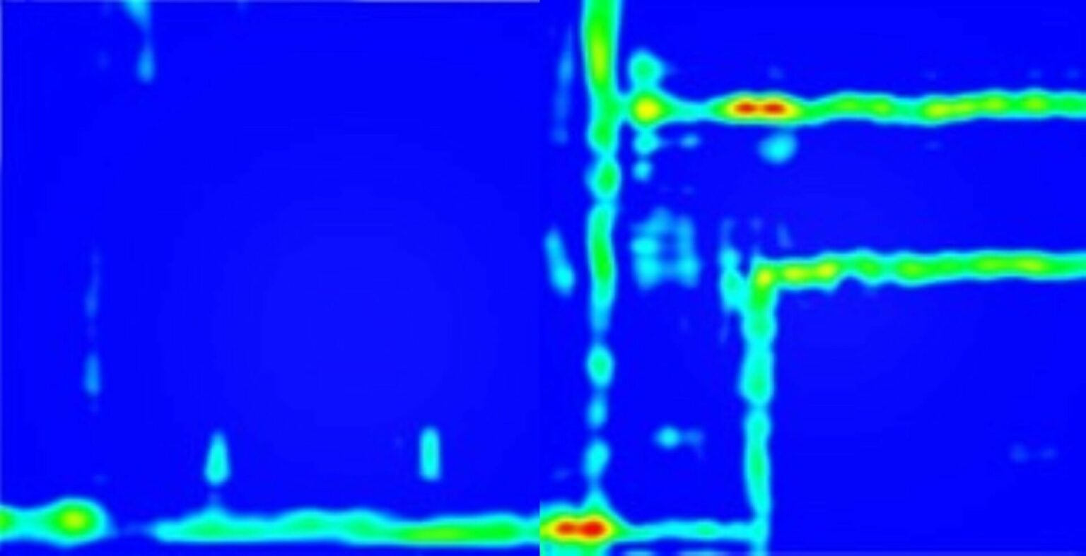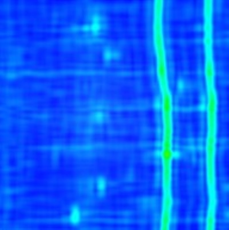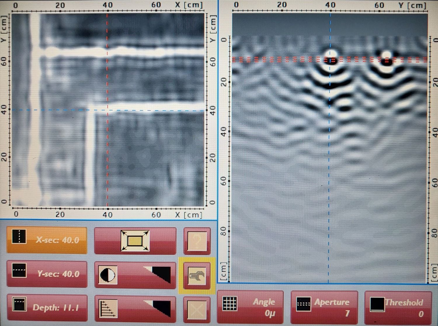 Result of the floor investigation (1 × 2 meters). Several heating pipes can be detected at approx. 10 cm depth