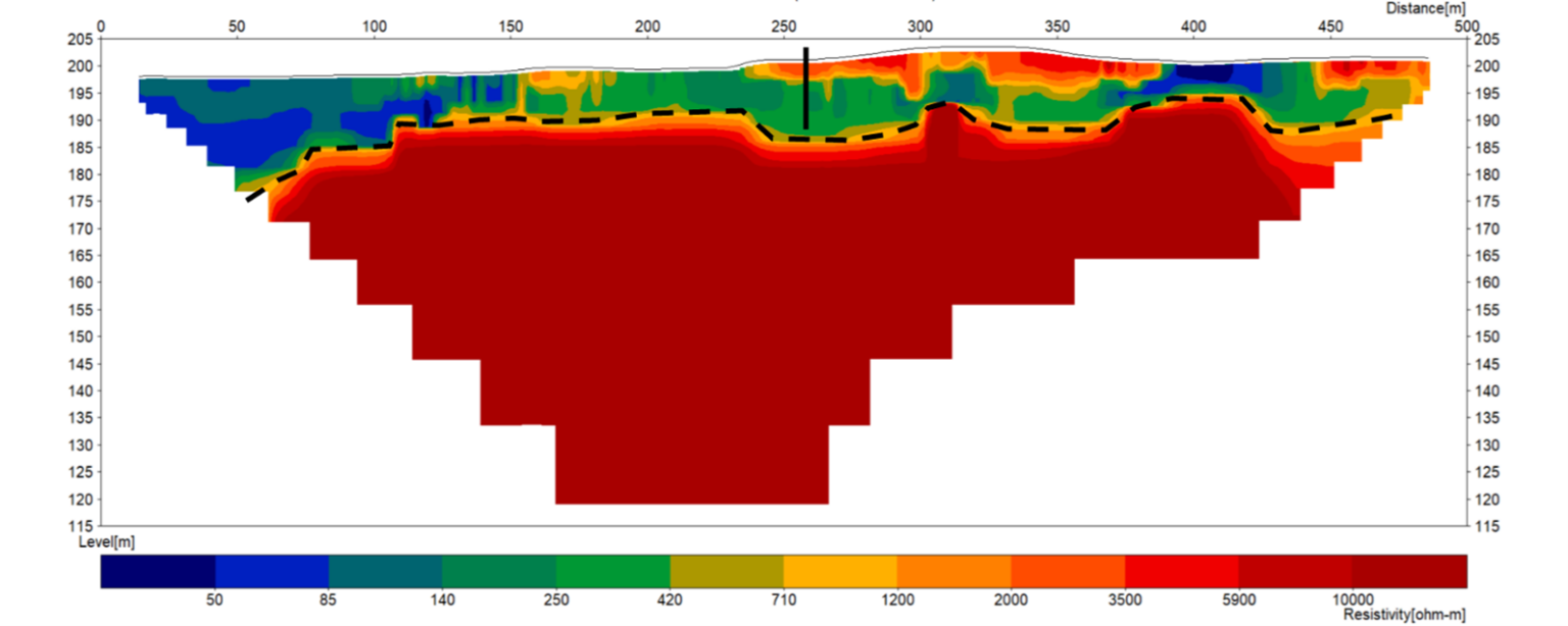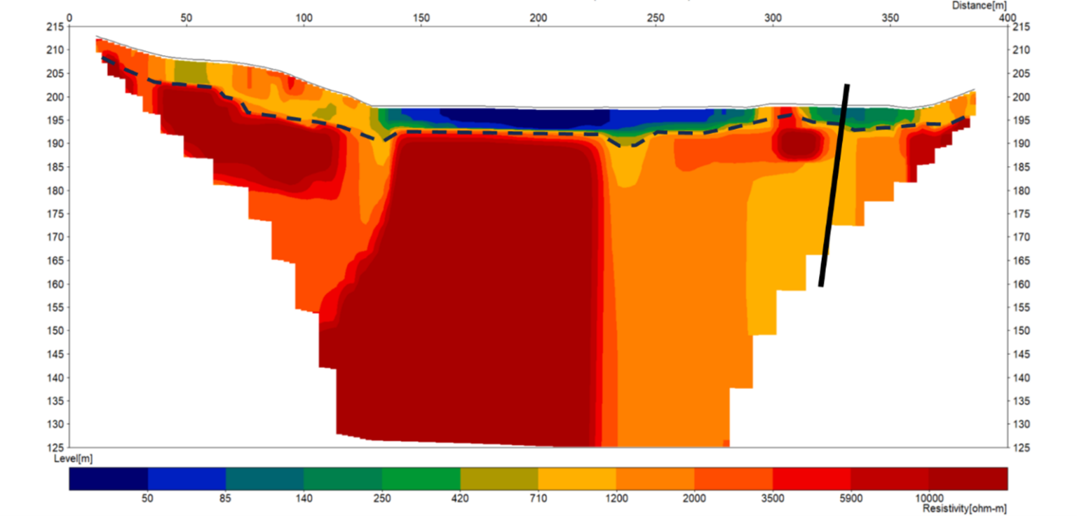 As the investigation area was extensive and sometimes difficult to access, the ABEM Terrameter LS 2 was used, in 2D mode (so called ERT Electrical Resistivity Tomography). The ABEM Terrameter LS 2 is a compact resistivity solution, also for rougher terrain.