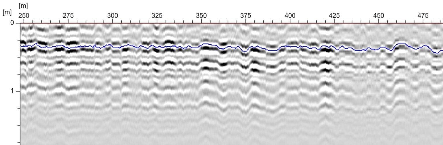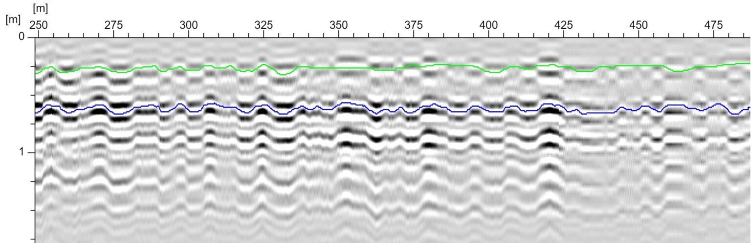 To achieve the best possible data quality, MALÅ Motion Trig was used to trigger the data collection. This enabled equidistant data, with a fixed trace interval of 5 cm, without using an encoder or wheel.