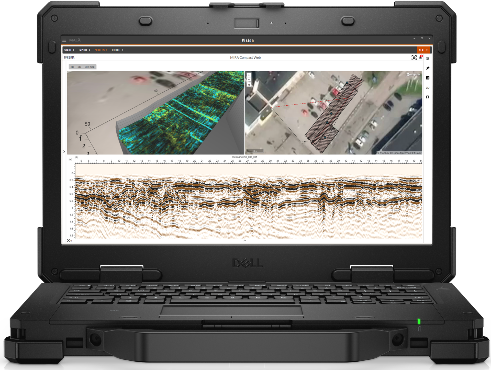MALÅ Vision Desktop makes planning, processing, and reporting on 3D GPR array data easy.