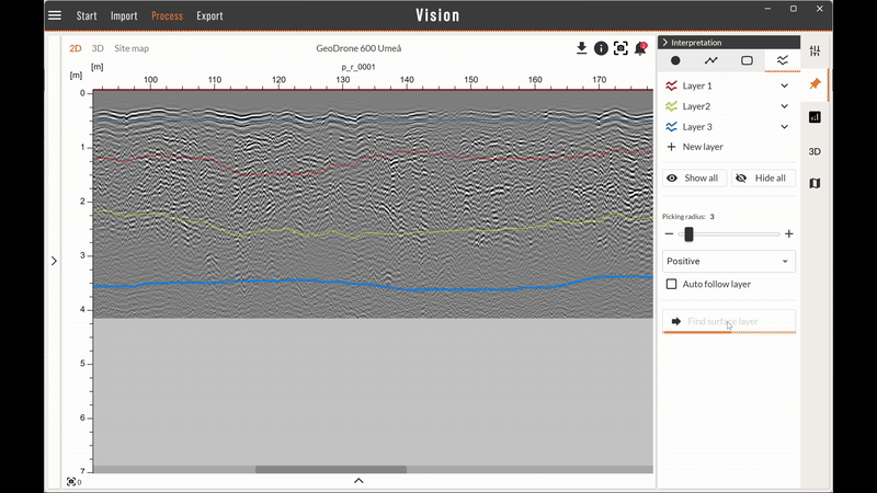 The new version features an all-new AI powered surface layer detection feature for data collected with airborne GPR solutions and a new innovative smart gain filter which can be used instead of traditional gain filters in the filter stack (see images below).