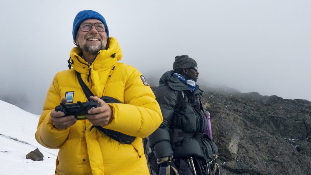 The rigorous climb up the Rwenzori mountains revealed the harsh reality of our changing world. After hiking through dense rainforests and alpine moorlands, the expedition arrived at the Stanley Plateau — the largest remaining glacier in the Rwenzori Mountains. Here they used a drone to take arial pictures of the glacier and, for the first time in history, a ground penetrating radar system was deployed across the tropical glaciers.